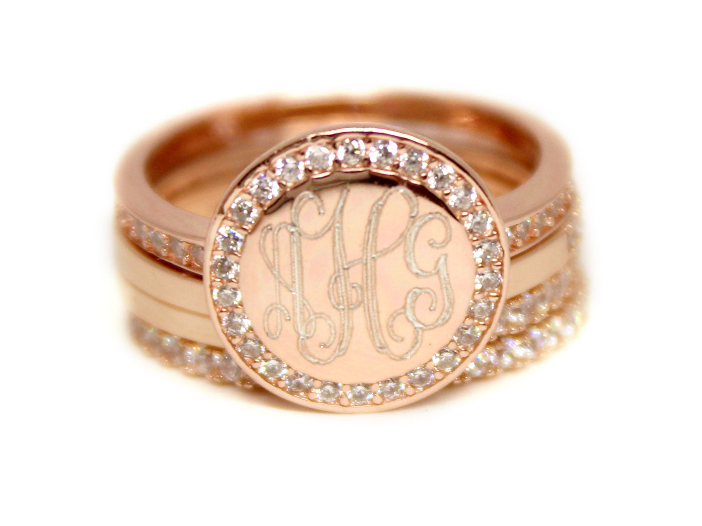 Rose Gold with CZ Stackable Ring - Plain or Monogram Engraved