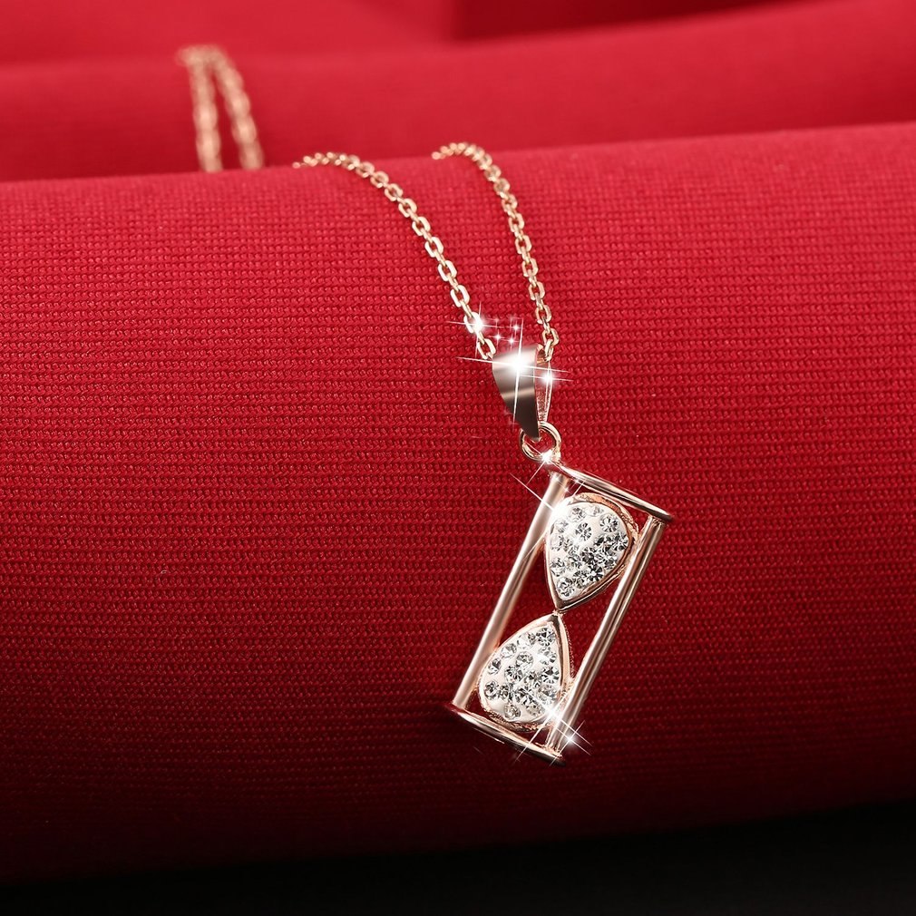 RhinestoneĀ Silver Hourglass Pendant Necklace