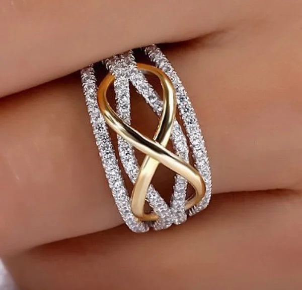 Infinite Love Heart Infinity Hourglass Ring, two tone, Gold plated Zin and Crystals, perfect for an Engagement Ring, Promise Ring, Romatic Gift, or Gift that says "I Love You!" for any occasion!Ā
