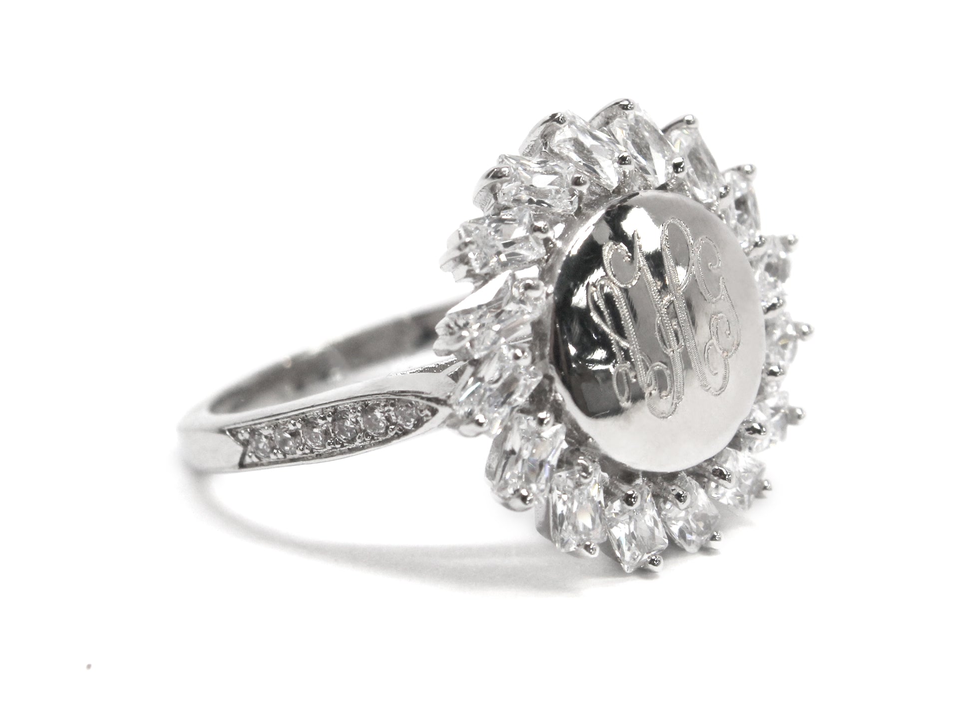 Engrave this stunning Sterling Silver CZ Sunflower Ring with your initials.The ring face measures approximately 0.7" (18 mm). Available in sizes 6-10 Please put the size of your choice inĀ a note once the item is added to your order.