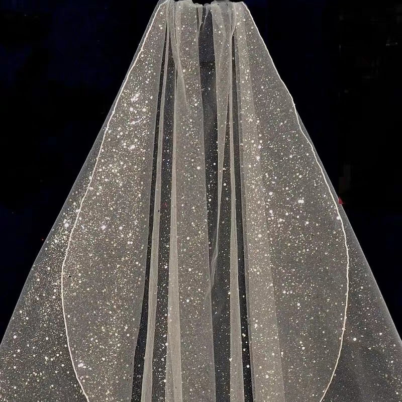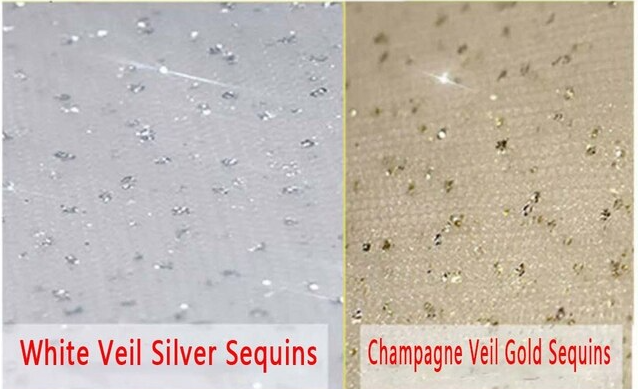 White with Silver Sequins or Champagne with Gold Sequins Sparkly Sequined Wedding Veil. Comes with attached comb.Ā